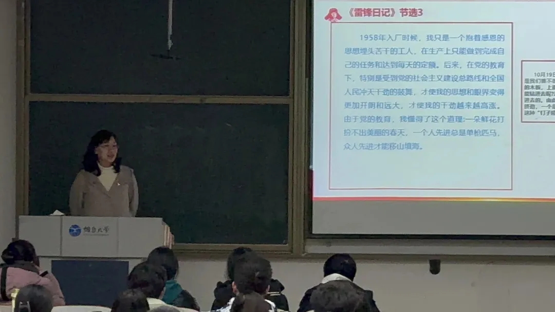 组织员鹿金雁老师为入党积极分子详细讲解了党员发展流程,并追溯历史、立足现实,引导大家树立理想信念,使大家充分认识到组织工作的严谨性和理想信念的严肃性;学院党总支副书记罗秀秀老师强调同学们既要学习雷锋的精神,也要学习雷锋的做法,把崇高理想信念和道德品质追求转化为具体行动,把雷锋精神代代传承下去。”