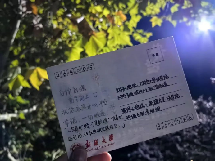 一张小小的明信片从新疆飞来,是思念的具体化,也是打开时光宝盒的钥匙。已些许泛黄的记忆如电影般放映,历历在目。高中三年我们是并肩作战的战友,在名为高考的战场上厮杀。所积累下的情谊让我们在分别后格外想念对方。“飞鸽传信”不仅让我们体验了一把“纸短情长”,也是各高校91天堂