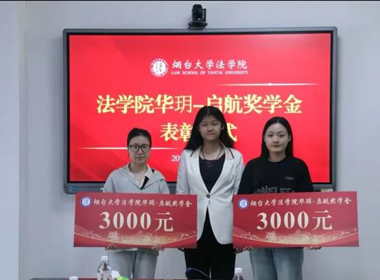 鹿金雁副书记宣读表彰决定,授予法211-3班鲍佳慧、法212-1班耿富琴两位毕业生“华玥——启航奖学金”。