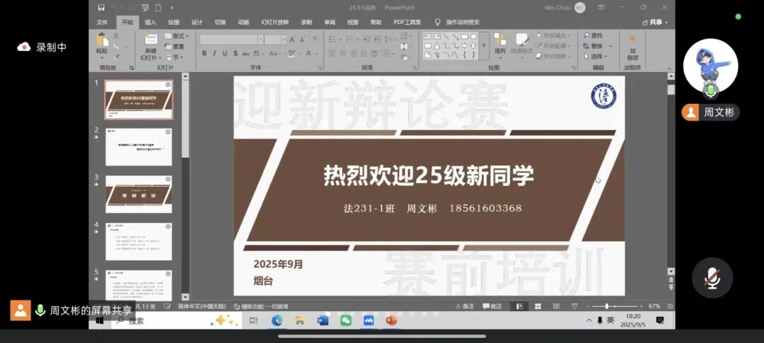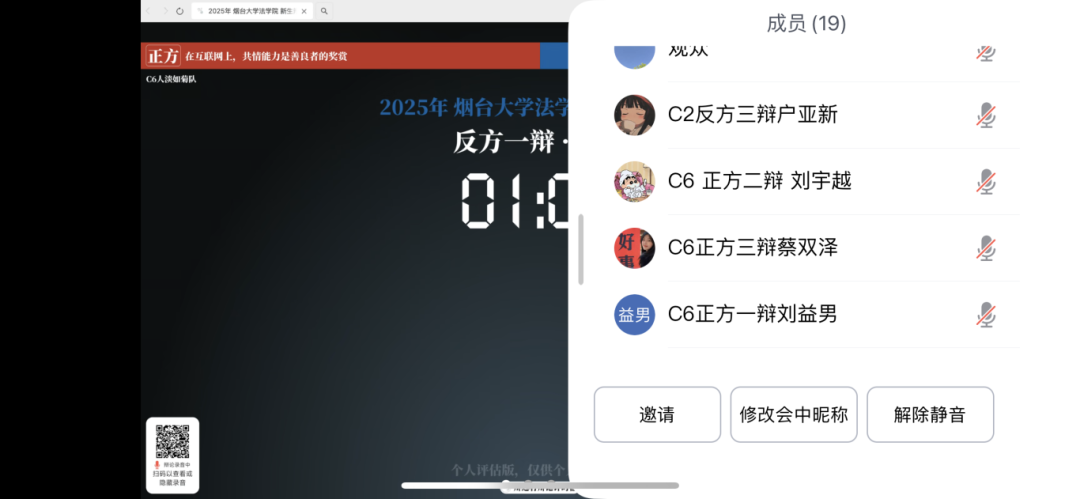 比赛当日,在各班导助和辩论社成员的共同主持下,新生辩论赛通过线上会议开展。