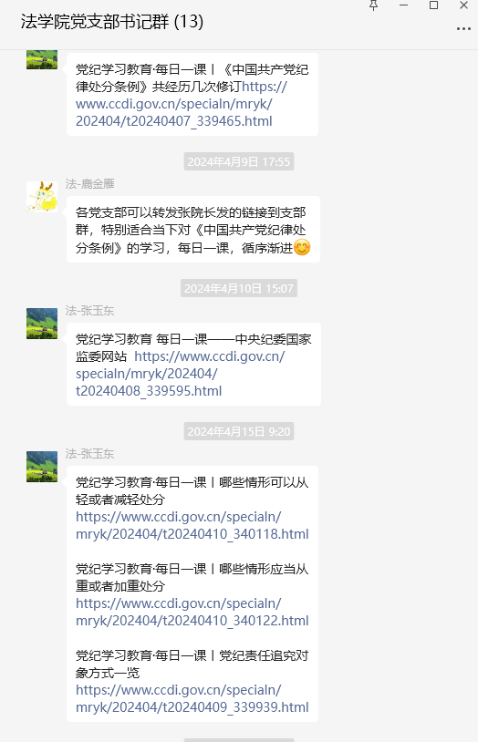 4月17日,学院特邀纪检监察领域专家李哲教授围绕“纪检监察学的新法学变化”,通过专家解读、先学一步,为党纪学习教育预热蓄能,深化广大师生对《条例》主旨要义的认识理解,引导师生模范遵守法律法规、校纪校规、师德师风、学风学纪。学院各师生党支部积极响应号召,迅速行动起来,依托“三会一课”等重要载体,通过逐章逐条、新旧对照等多种方式开展常态化学习。