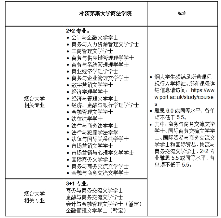 注:以上课程申请需递交朴茨茅斯大学相关学院,根据申请者学术背景个案审核。