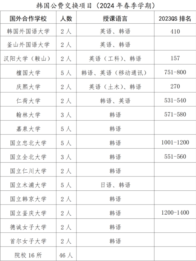 根据学校与韩国友好院校的交流协议,将于 2024年春季学期选派全日制在校生赴韩国友好院校交换学习,预报名有关事宜如下所示。