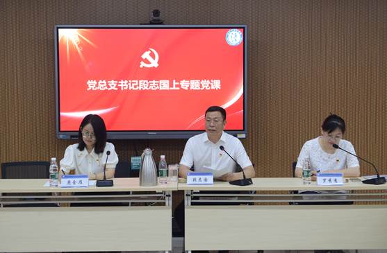 段志国书记以《牢记“四有”要求,争做优秀党员》为题,从心中有党,强化党员意识;心中有责,发挥带头作用;心中有爱,做个仁爱之师;心中有戒,能干事不出事四个角度,给全体教职工党员送上一堂专题党课。段书记表示,在新的征程上,教工党员们要以激扬蓬勃向上的朝气、披荆斩棘的锐气和开拓进取的勇气,踔厉奋发、凝聚破难,为学院的高质量发展贡献力量。