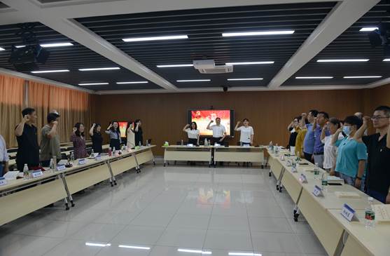 党总支书记段志国同志领誓,面对鲜红的党旗,带领全体党员一起高举右拳,庄严宣誓。“我志愿加入中国共产党……”铿锵恢宏的誓词,震撼着在场的每一位党员,一字一句,神圣而豪迈,体现了党员同志对中国共产党的无限忠诚。