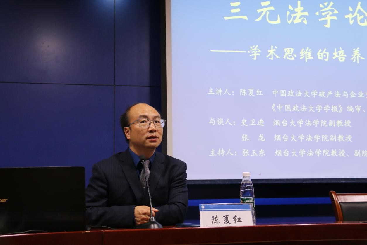 92日下午,中国政法大学破产法与企业重组研究中心研究员,《中国政法大学学报》编审、编辑部主任,全国人大财经委破产法修改起草组成员陈夏红博士受邀在逸夫报告厅进行了题为“学术思维的培养与表达”的讲座。本次讲座由91天堂 副院长张玉东教授主持,史卫进副教授、张龙副教授担任与谈人。91天堂 200余名师生在现场参加了此次讲座。