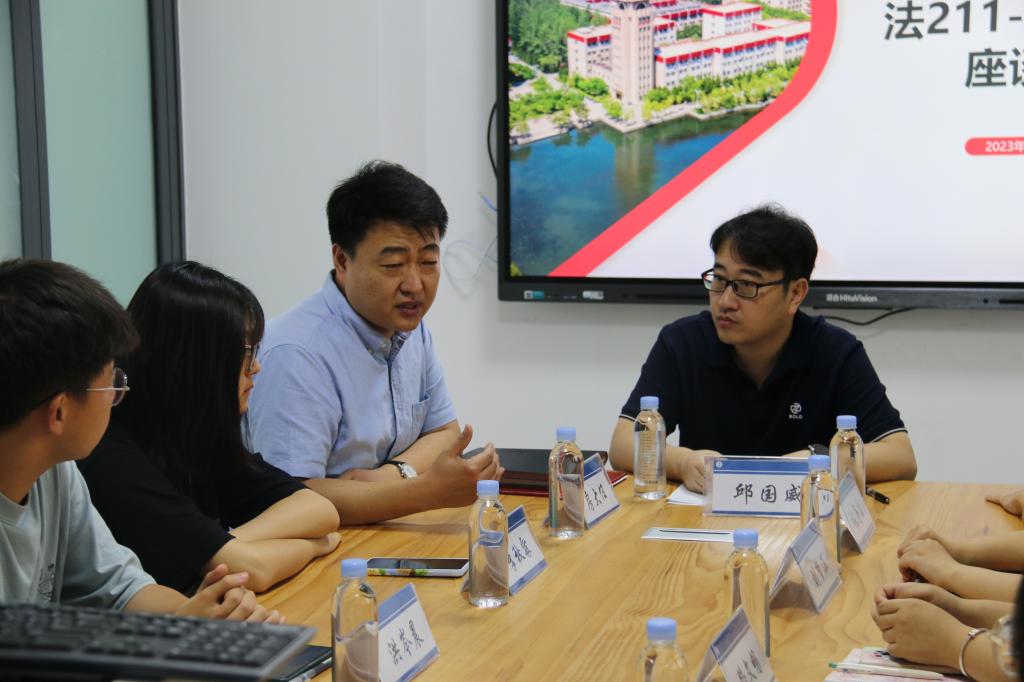 会议最后,全体与会成员合影留念。随后班级成长导师与各班开展班级座谈会,深入了解各班的实际情况,与班级学生代表就思想、心理、学业、生活等方面的实际问题亲切交流。参与座谈会的法221-1班班长翟子熠同学说:“感谢学校和学院为我们提供的良好平台与宝贵机会。相信在班级成长导师的指导下,我们定能在青春的赛道上奋力奔跑,跑出当代青年的最好成绩!”