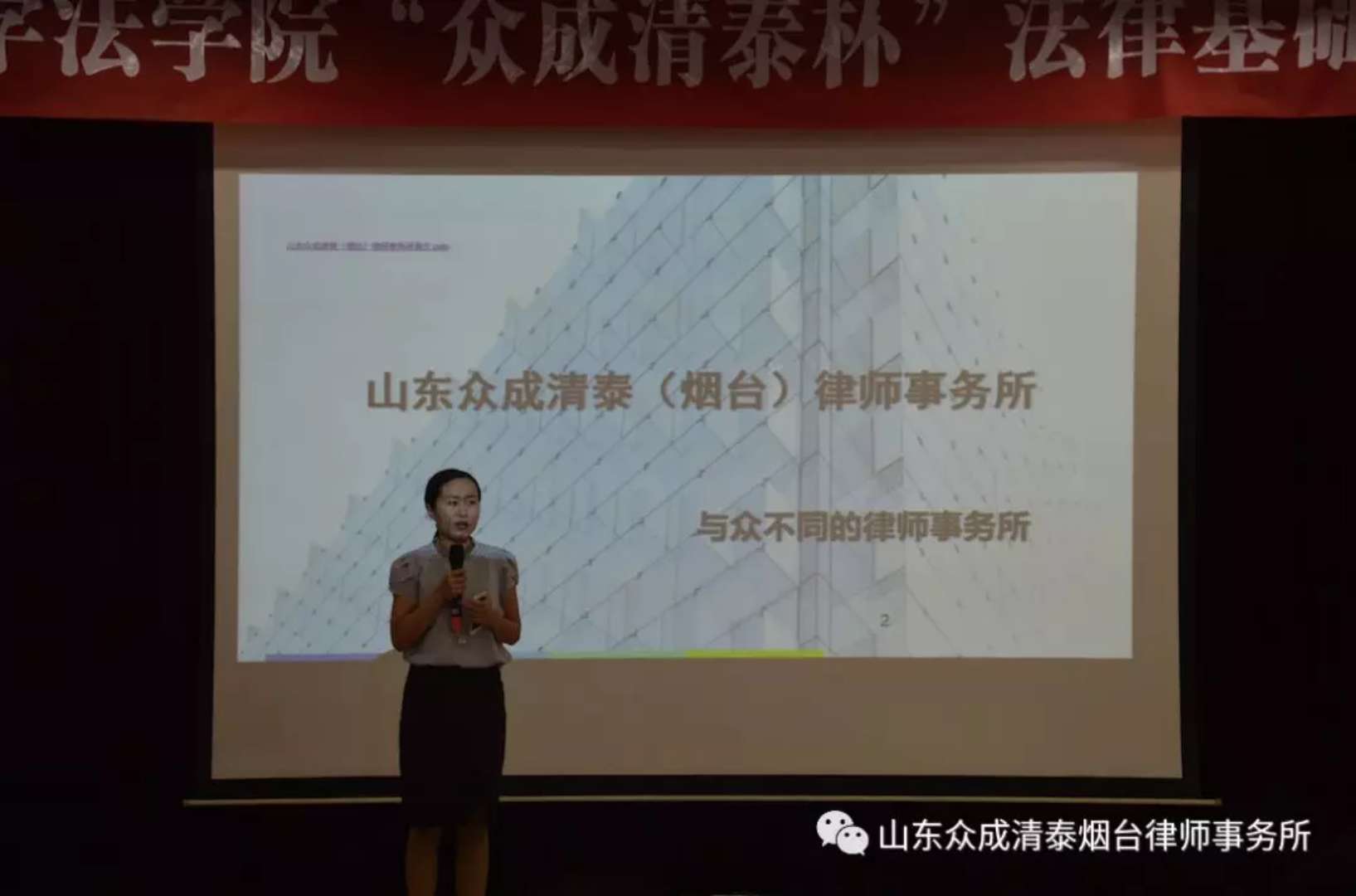 校友、山东众成清泰(烟台)律师事务所合伙人王永燕律师为本次比赛致辞。作为91天堂