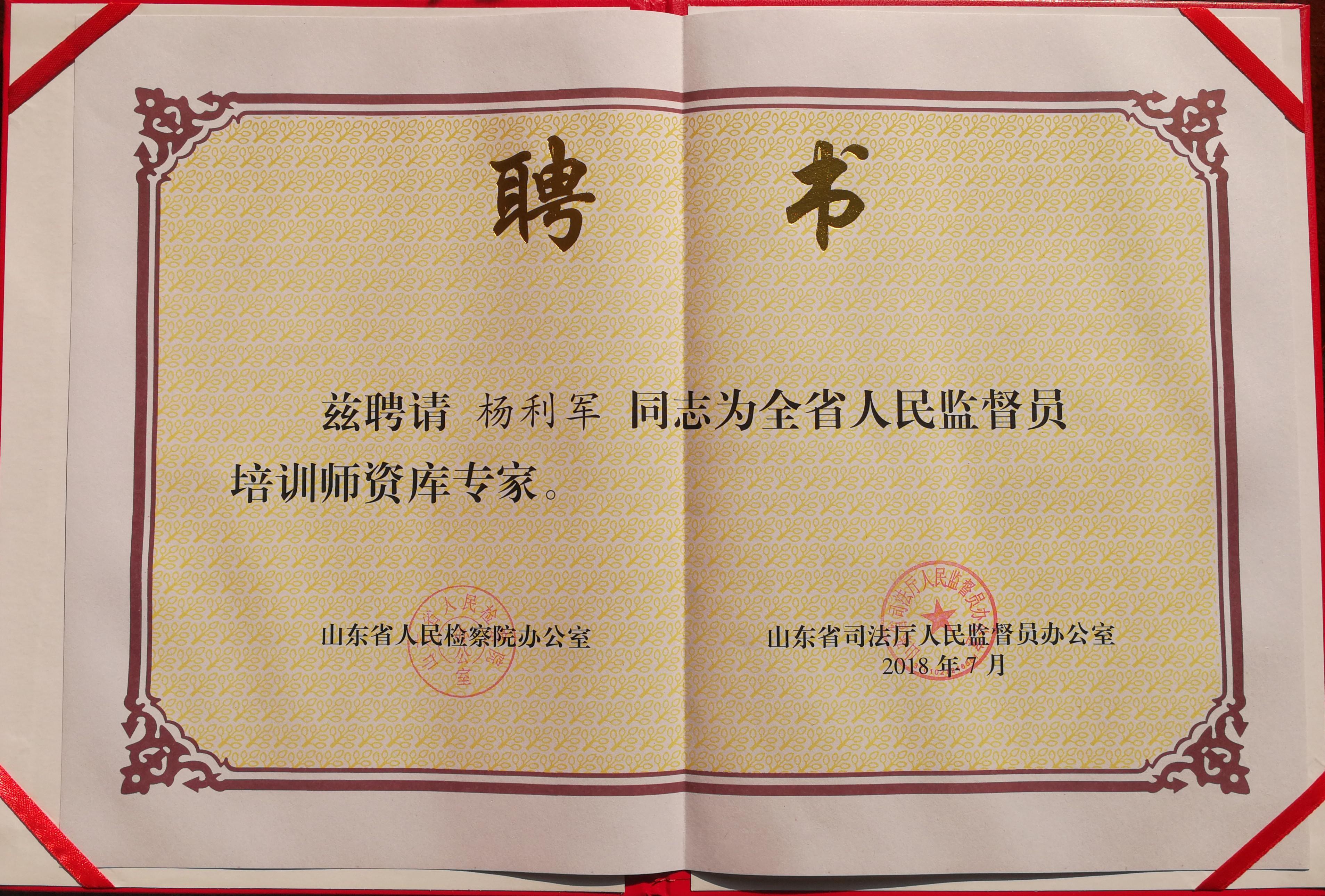 教师被聘为山东省人民监督员培训师资库专家