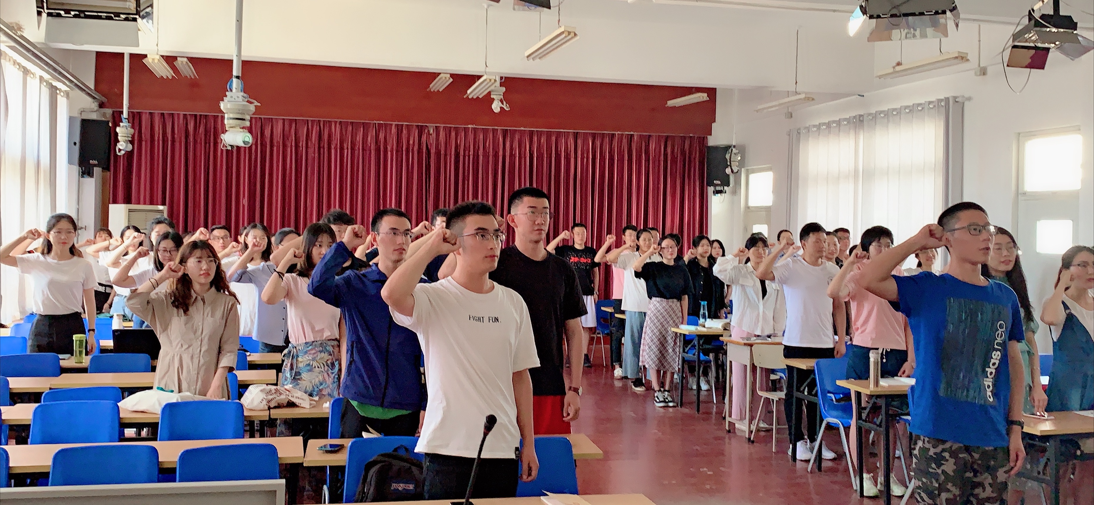 师生勇担历史使命,永葆共产党员政治本色的坚定信念。“党啊我想对你说”的演讲中,孙悦航、石文静、陈禹洲三位同志以绘声绘色的演讲回眸昨日,展望明天。在场的与会者也深受感染,更加深刻的领略了中国共产党自建党以来所做出的卓越贡献,更增强了爱国爱党意识。在“不忘初心跟党走,牢记使命写青春”主题感怀环节,党婕同志作为老党员分享了成为党员后的心路历程,表达了对建党98周年的激动之情。最后,与会成员共同观看《我宣誓》,激昂澎湃的入党誓词恰似大音希声,蕴涵着共产党人不绝如缕的精神血脉,贯穿着共产党人矢志不渝的理想与坚守,激励各位党员牢记嘱托,肩负使命,砥砺奋进,为书写无私奉献、勇于担当的新时代青春篇章而不懈奋斗。