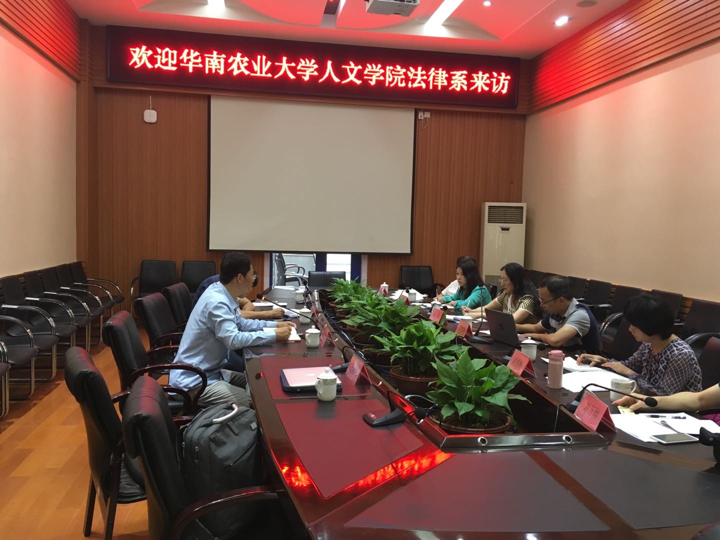 的基本情况。江主任介绍了华南农大法律系的情况。双方还围绕法学人才培养方案修订事宜进行了深入交流。