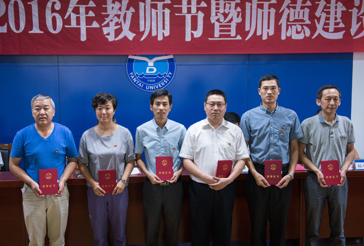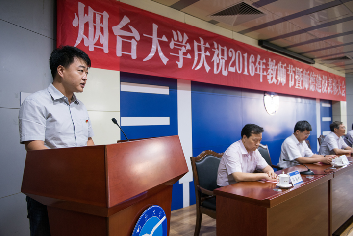 会上,党委书记崔明德代表学校党委、行政,向受到表彰的先进单位和个人表示热烈的祝贺,向广大教职员工、离退休老教师、老职工致以诚挚的问候和节日的祝福。同时,崔书记以“甘守三尺讲台,争做‘四有’老师”为主题对如何加强师德建设作了进一步强调。房绍坤校长带领新入职教师和优秀教师代表面向国旗庄严宣誓,抒发了烟大教师立德树人的坚定志向和甘为人梯的无私奉献精神。