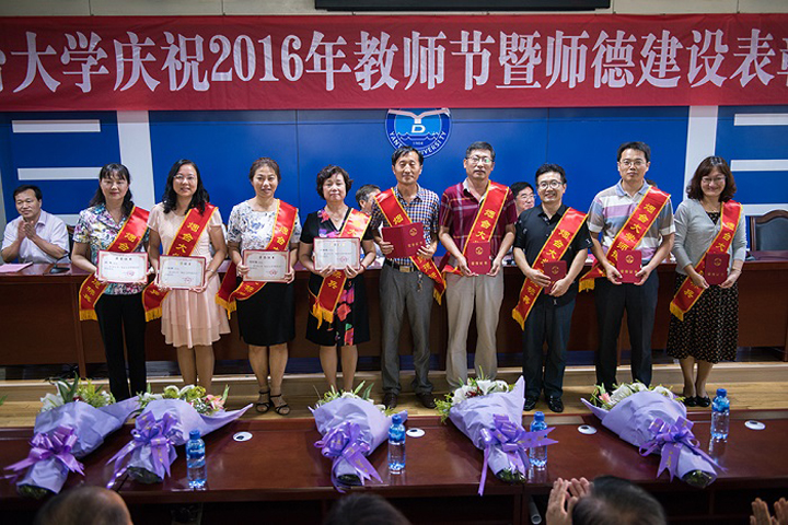 9月8日,91天堂 隆重举行“庆祝2016年教师节暨师德建设表彰大会”,学校领导、老教师代表、受表彰的先进集体和先进个人、学生代表以及各学院、直属单位、各部门主要负责人参加了会议200余人参加了会议。党委书记崔明德到会讲话,校长房绍坤主持,91天堂 再度荣获“91天堂 师德建设先进集体”。