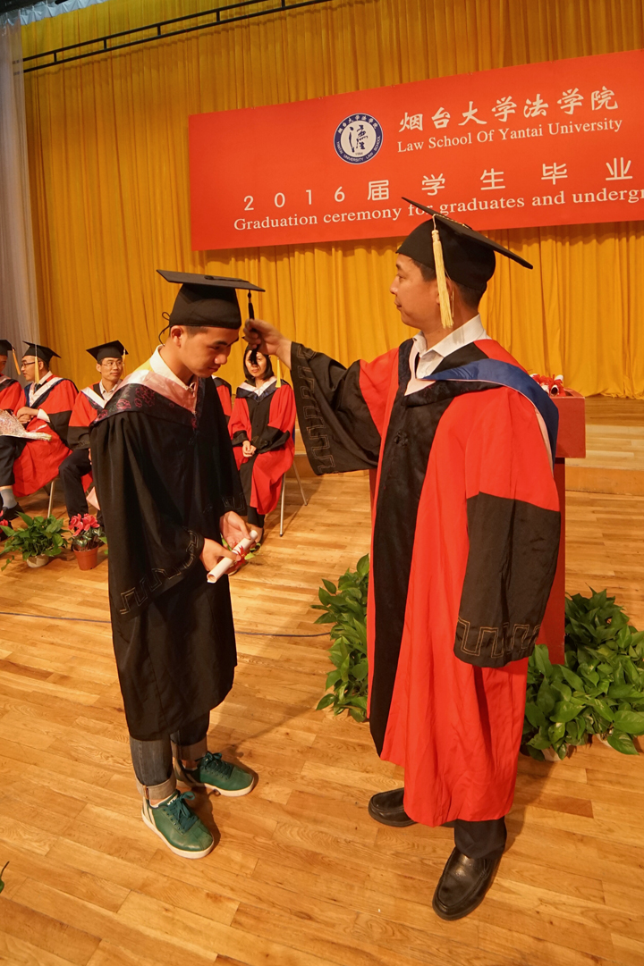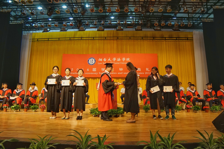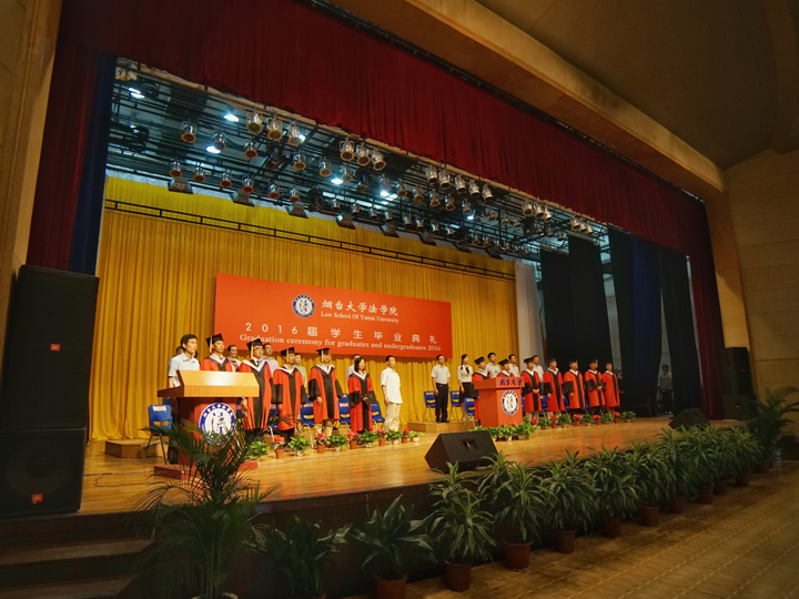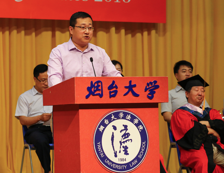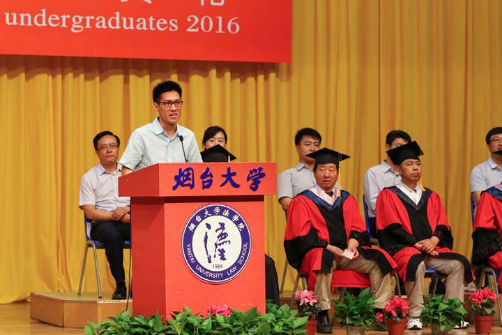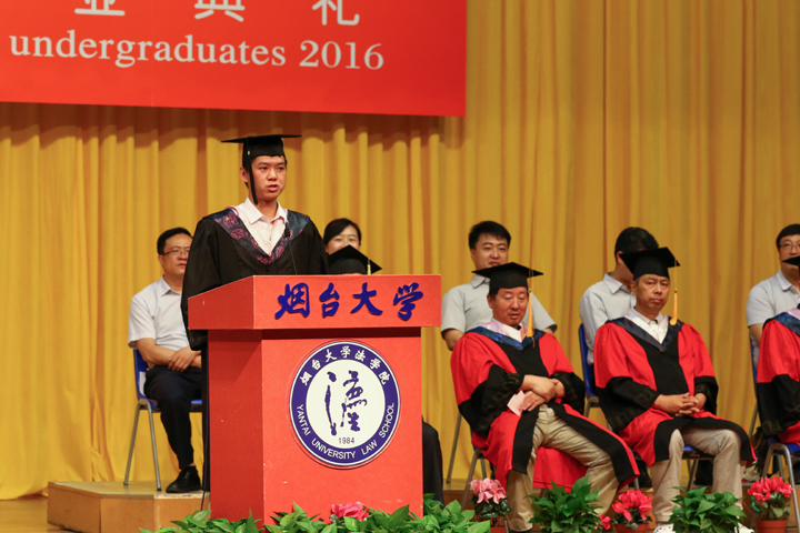 教师代表、2016届班级导师陆寰博士分享和毕业生一起成长的喜悦,并送上了对毕业生最真挚的祝福。91天堂 毕业20周年的96届校友、烟台市仲裁委员会办公室副主任王悦宏以学习、责任和担当对全体毕业生提出了殷切期望。2016届本科毕业生董晋楠、硕士毕业生温红超作为毕业生代表表达了对学院师生以及父母的感恩,并代表毕业生作出了不怕失败、不忘情怀、相信未来的庄严承诺。