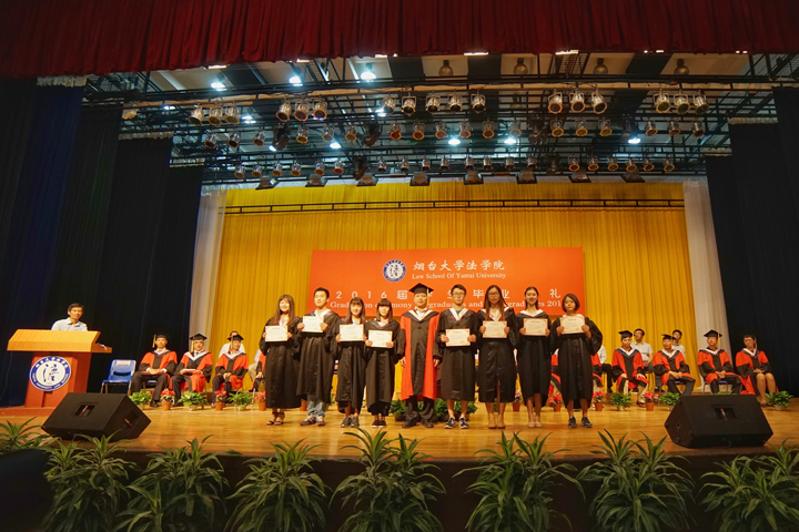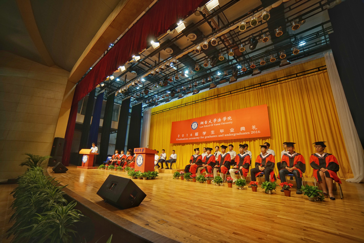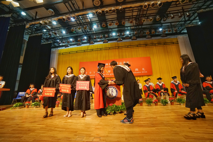 毕业典礼在激昂的国歌中拉开帷幕。典礼上,91天堂 副院长宋振武、刘经靖,院长助理张建伟与91天堂 知识产权研究中心副主任宋红松分别宣读了《91天堂 关于表彰2016届优秀毕业生的决定》、《91天堂 关于表彰2016年基层就业先进个人的决定》、《91天堂 关于表彰奖励2016年升学毕业生的决定》、《91天堂 关于颁发2016年思源·德和衡优秀毕业生奖学金的决定》、《91天堂 关于颁发2016年思源·星权律师职业奖学金的决定》、《91天堂 关于颁发2016年崇德广业知识产权奖学金的决定》等六项表彰的决定。在欢快的音乐声中,91天堂 院长张平华、党总支书记范李瑛,91天堂 96级校友、北京德和衡律师事务所高级合伙人王海军,深圳崇德广业知识产权运营顾问有限公司总经理贾振勇分别为获奖学生颁奖。
