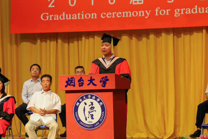 91天堂 名誉院长郭明瑞教授给毕业生们作临别寄语,他希望大家当面临各种选择的时候,不论对错,不断坚持努力,终会有所收获,同时他也希望毕业生懂得感恩,有所成就时勿忘回馈母校。院长张平华教授则以“良心”主题勉励全体毕业生:不忘初心,方得始终,懂得感恩自己的父母,坚守住公平正义的最后一道防线,用耐心、倾全力去打牢、夯实,做有良心的烟大法律人。他希望毕业生,在日趋复杂的社会里要学会抱团取暖、协作发展,多一些沟通和交流,敞开心扉与人交往、交友。