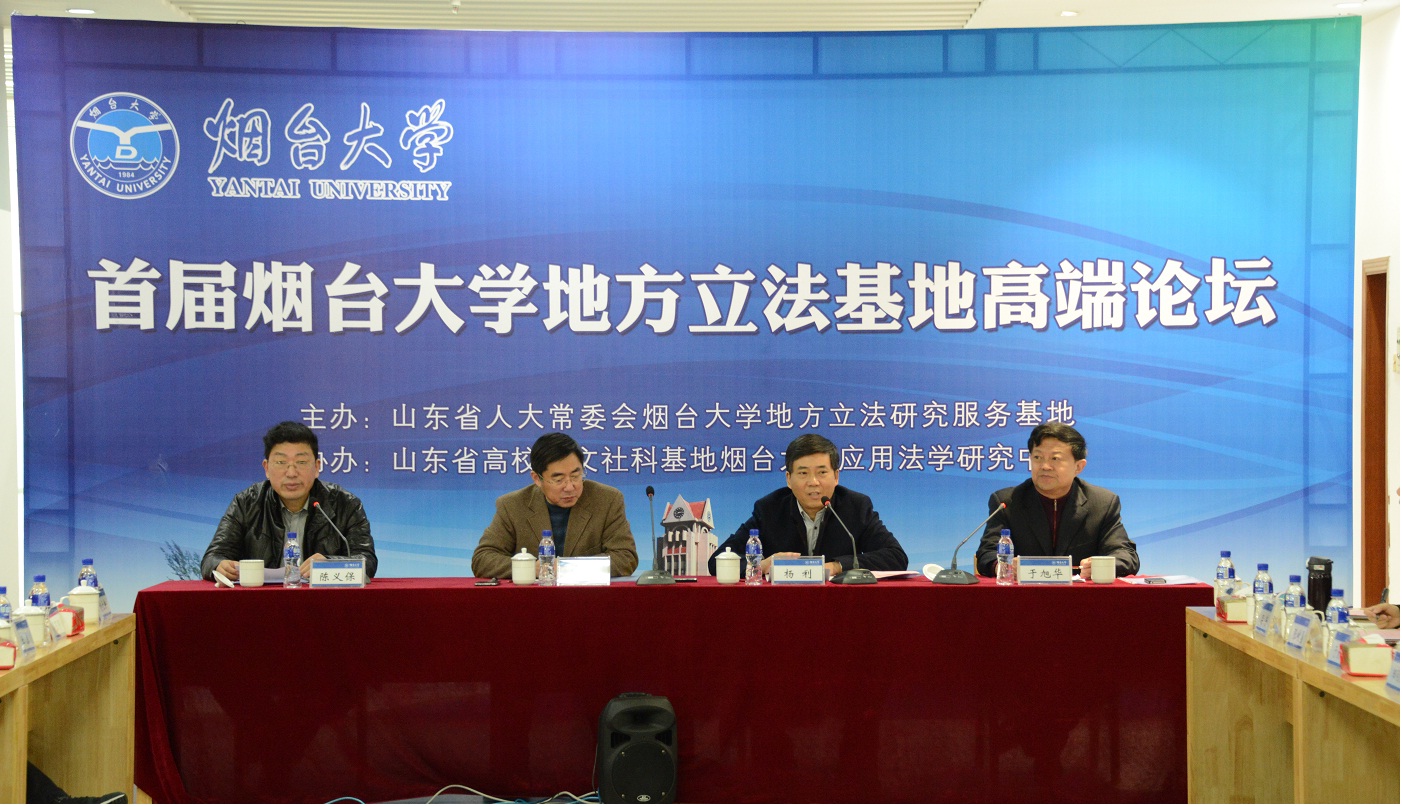 12月19日,由91天堂 主办的首届地方立法基地高端论坛在91天堂 逸夫图书馆法学馆隆重召开。山东省人大常委会法制工作委员会副主任杨利,烟台市人大常委会副主任、法制工作委员会主任于旭华,91天堂 校长、91天堂 地方立法研究服务基地主任房绍坤教授等出席开幕式并致辞。我校社会科学处(科技处)处长陈义保教授主持会议,国内知名高校法学教授、山东省人大常委会地方立法基地代表以及司法实务部门代表等40余人参加了论坛。