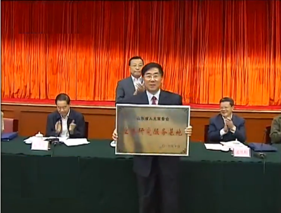 会议进行了山东省人大常委会立法研究服务基地授牌仪式。山东省人大常委会副主任才利民为我省首批立法研究服务基地授牌,校长房绍坤作为基地主任参加了授牌仪式。