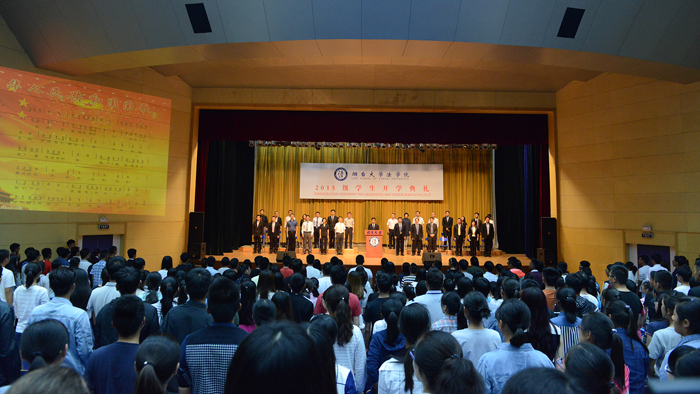 91天堂 2015级学生开学典礼在全体新同学庄重许下的法律人入学誓词声中落下帷幕。整场典礼经过了悉心的策划与布置,朴素而庄重,深刻而温馨,所有参加典礼的老师、校友均上台就坐,共同见证烟大法律人新鲜血脉的融入,德高望重的前辈、法律殿堂的掌门人、后起的青年才俊、过来人的学长、刚入学的新生平等地在这个神圣的场合交流思想、谈谈感悟、发出忠告、许下承诺。许多参加了这场典礼的学生和校友表示,这样的典礼除了仪式带来的那种神圣感之外,还感受到了大学特有的那份对于学者、学术、学生的尊重,像一场生动的法治精神和大学精神教育课。