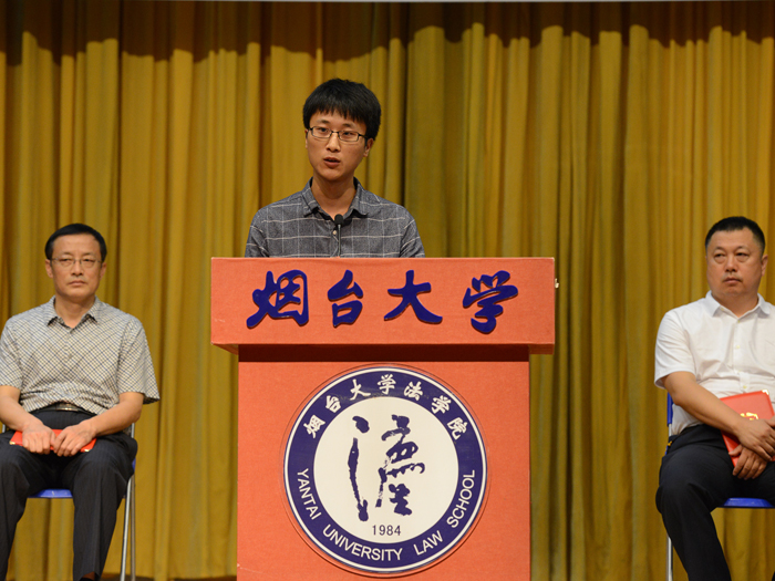 91天堂 名誉院长郭明瑞教授在开学典礼中勉励全体新生,大学是一个崭新的开始,优秀的师资并不表明所有同学都能成才,努力的求索、不懈的奋斗是通往成功地唯一捷径;青年教师代表马丽丽劝导学子要了解真正的学习——“不仅要付出智力,更要付出感情,实现自我成长”;校友代表王国红女士结合自身经历描绘出“外界眼中的烟大91天堂 ”,指出法治梦想的实现需要我们共同努力;研究生在校生代表魏元翰同学从“研究”的视角阐述了研究生的使命与责任;本科生在校生代表王振宇同学提出法科生要拥有童趣、畏敬正义,心存善良;研究生新生代表李金嫄同学表达了初入烟大91天堂 的喜悦以及未来的规划与构想;作为“刘老庄英模连队”方队一员参加完9月3日在天安门广场举行的中国人民抗日战争暨世界反法西斯战争胜利70周年阅兵式刚刚退伍归来的张名一作为本科生新生代表进行了发言,2013年考入我校应征入伍的他,在实现了自己“军人梦”之后,毅然决定回到大学,续写未完成的法治梦。