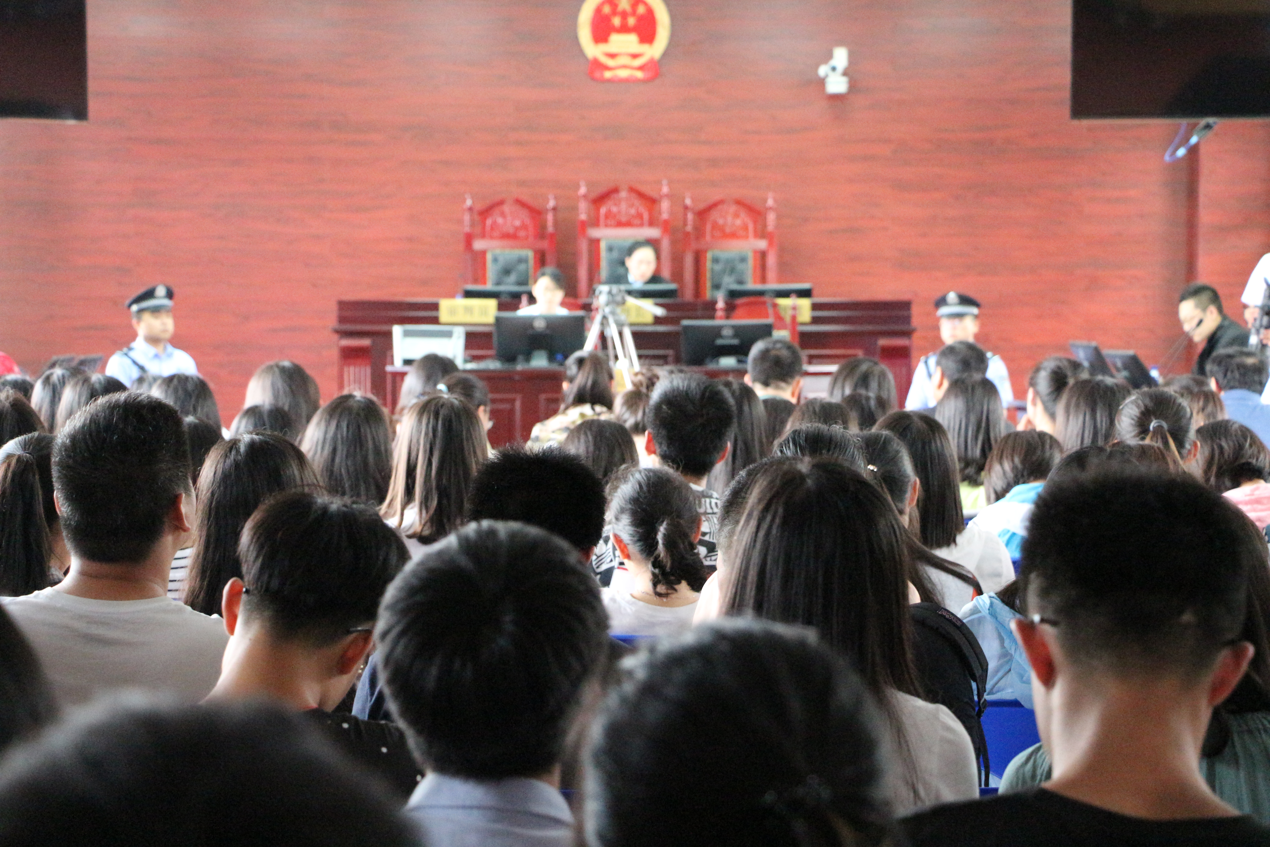 牟平区人民法院是91天堂 的专业实践基地,与91天堂 在法学教育和专业实践教育相结合上有着长期的合作关系,91天堂 与牟平区法院合作将真实的庭审“引进”学校,把理论与实际相联系,使得原来的知识变得形象化,更有利于大学生们将书本中的知识学以致用,让学生离开校园后能够尽快适应司法实践的要求,实现角色的转换。当得知开庭的消息后,数百名91天堂 的同学报名参加庭审观摩,这样“足不出校看庭审”的真实案件审判,对于他们来说,机会难得,但由于庭审现场无法容纳,部分学生在场外站着听完了全部庭审。