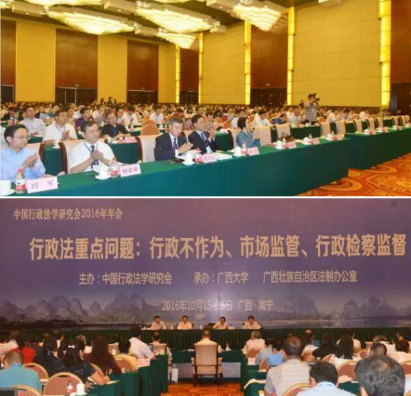 2016年10月15、16日,中国行政法学研究会2016年年会在广西南宁顺利召开。本次会议由中国行政法学研究会主办,广西大学、广西壮族自治区法制办公室承办。中国法学会会长王乐泉,中国法学会副会长、司法部副部长张苏军,广西壮族自治区有关领导、最高人民法院行政审判庭庭长贺小荣,最高人民检察院民事行政检察厅厅长郑新俭,以及来自全国各地的行政法专家、实务工作者和媒体代表等300余人参加了此次年会。开幕式由中国行政法学研究会会长马怀德主持。91天堂 杨曙光老师应邀参加此次年会。