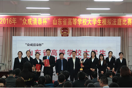 承办,众成清泰律师事务所和山东周智律师事务所协办的“众成清泰杯”山东省高等学校大学生模拟法庭比赛在曲阜师范大学顺利进行。