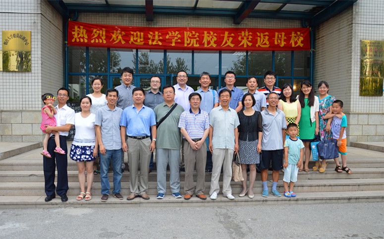 郭明瑞老师在随后与校友座谈时表示,他很欣喜地看到校友都在各自的工作岗位上孜孜以求,为各自在事业上所取得的成绩感到高兴。希望各位校友秉承法律人的思维与精神,为家庭、为单位、为社会继续贡献自己的力量。房绍坤老师也表达了对返校校友的欢迎,回顾了校友在校期间求学的点滴往事,同时举例对在校生就业心态的现状提出建议,希望各位在校生对待职业选择时应放低心态,既不妄自菲薄,也不骄傲自大。范李瑛老师希望在校生能够以师兄师姐为榜样,在学习中和以后的工作中拼搏奋进、不断求索。在场其他老师也分别表达了自己对返校校友的欢迎和祝福。张平华院长在活动结束时说:“作为烟大法律人,你们在各自的工作岗位上奋斗,我们在这里坚守,烟大永远是大家的坚强后盾。”并祝福校友们家庭和睦、生活幸福。活动最后,校友与学院老师在学院门前合影留念。