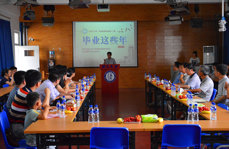 2002级民商法学专业学生是91天堂 招收的第四批学术型硕士研究生,共有18人,目前有7人在高校从事教学、科研、学生工作,有6人在国家机关工作,有2人从事律师实务,有3人在大型企业任职。经过十年的勤勉与历练,2002级民商法专业校友已成为所处行业的中坚力量。学院利用此次校友返校聚会为契机,开展“毕业这些年”校友主题演讲活动,旨在有效结合校友工作与学生工作,搭建起校友与在校生的交流平台,通过邀请校友分享“毕业这些年”自己的奋斗故事,讲述自己的心路历程,展示自己的精彩人生,把自己的所知、所思和所悟与学校的师生一起分享,激励广大学子向优秀校友学习,树立合理目标,更加有效地规划大学生活和职业方向。