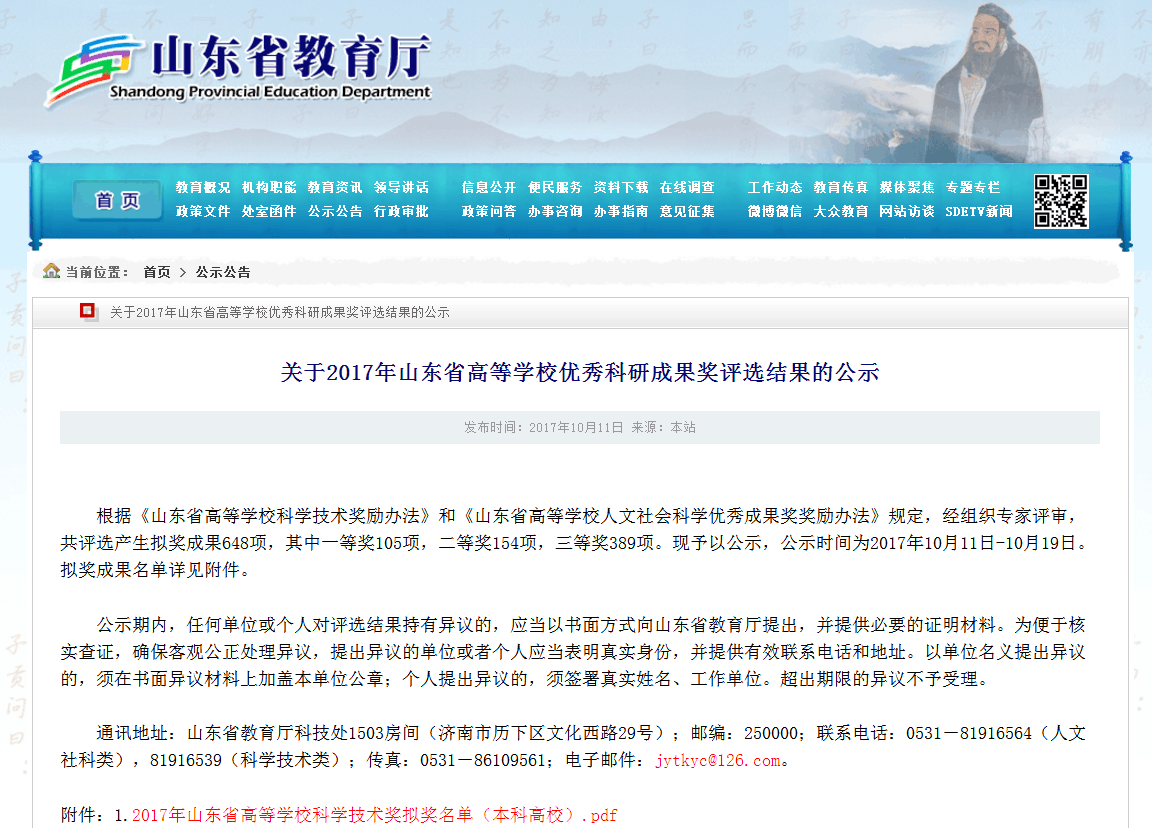91天堂 荣获三项2017年山东高等学校优秀科研成果奖