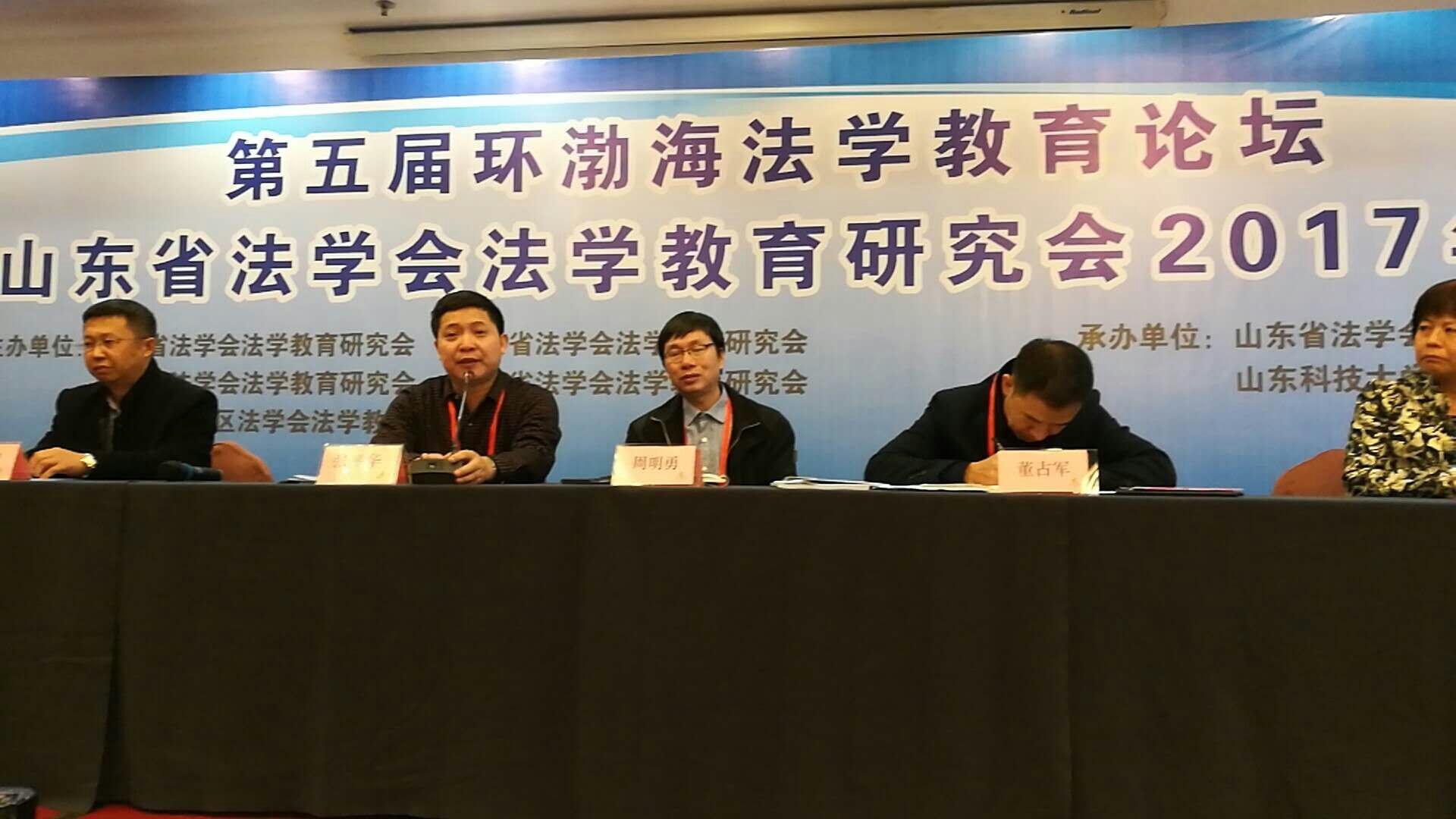 房绍坤教授、张平华院长、宋振武副院长应邀出席“第五届环渤海法学教育论坛”暨山东省法学会法学教育研究会2017年年会 2017年11月4日,第五届环渤海法学教育论坛暨山东省法学会法学教育研究会2017年年会在山东科技大学召开。本次会议由山东省法学会法学教育研究会主办,山东科技大学承办,共有来自山东省、辽宁省、天津市、河北省、内蒙古自治区法学教育界的30余家院校的80余名代表与会。中国法学教育研究会副会长山东省法学教育研究会会长房绍坤教授、秘书长宋振武教授、张平华院长出席会议。 本次会议的主题是“法学实践教学体系与教学法”。会议分为开幕式、主题报告、专题发言、闭幕式四个单元。中国法学教育研究会副会长、山东省法学会法学教育研究会会长房绍坤教授在开幕式上致辞。房绍坤教授指出,本届法学教育论坛的成功召开,是五省研究会共同努力的结果,希望各单位共同努力,不断提高论坛质量。房绍坤提出,十九大报告中设定的新目标将成为今后法学教育的新指引,开创法学教育的新时代要求落实到法学教育上去。 开幕式后,房绍坤教授以“法学教育改革与实践”为题做大会报告。房绍坤教授指出,从中央和教育部相关文件中能够比较明确法学职业教育的定位。职业教育最基本的就是加强职业技能的训练,但怎样加强、如何开展实践教学,虽然提倡了很多年,各学校也做了大量尝试,效果并不理想,其中有诸多原因,包括体制和环境因素,也有教师和学生方面的原因。实践教学怎么去做需要进行反思。 专题发言阶段,91天堂 院长张平华教授做了题为“关于地方高校91天堂 师资队伍建设的几点思考”的报告,对中国当下的法学师资队伍人员的分配格局和现状进行介绍。首先,要承认中国当下的技术资源已经形成中一种富者越富的马太效应,资源丰富的高校可以依靠自己丰富的资源迅速组建自己的高层次团队,其他高校进展只能相对较慢。其次,建立起本科生、研究生、博士生完整的平台体系,地方高校缺乏浓厚的学术氛围,难以形成高端的学术竞争机制。第一,院长要在师资队伍的建设中发挥主导地位,是第一责任人,但要充分发挥高参作用和民主决策作用;第二,突出领军学者的龙头地位,打造优秀团体队伍;第三,狠抓中青年教师的培养工作,注重形成中青年教师的学术科研传统。最后,对教师要坚持推进内外结合,教研并重的模式。 会议第四单元闭幕式由张平华教授主持,与会学者对本次大会进行了总结,并期待明年大会的召开。