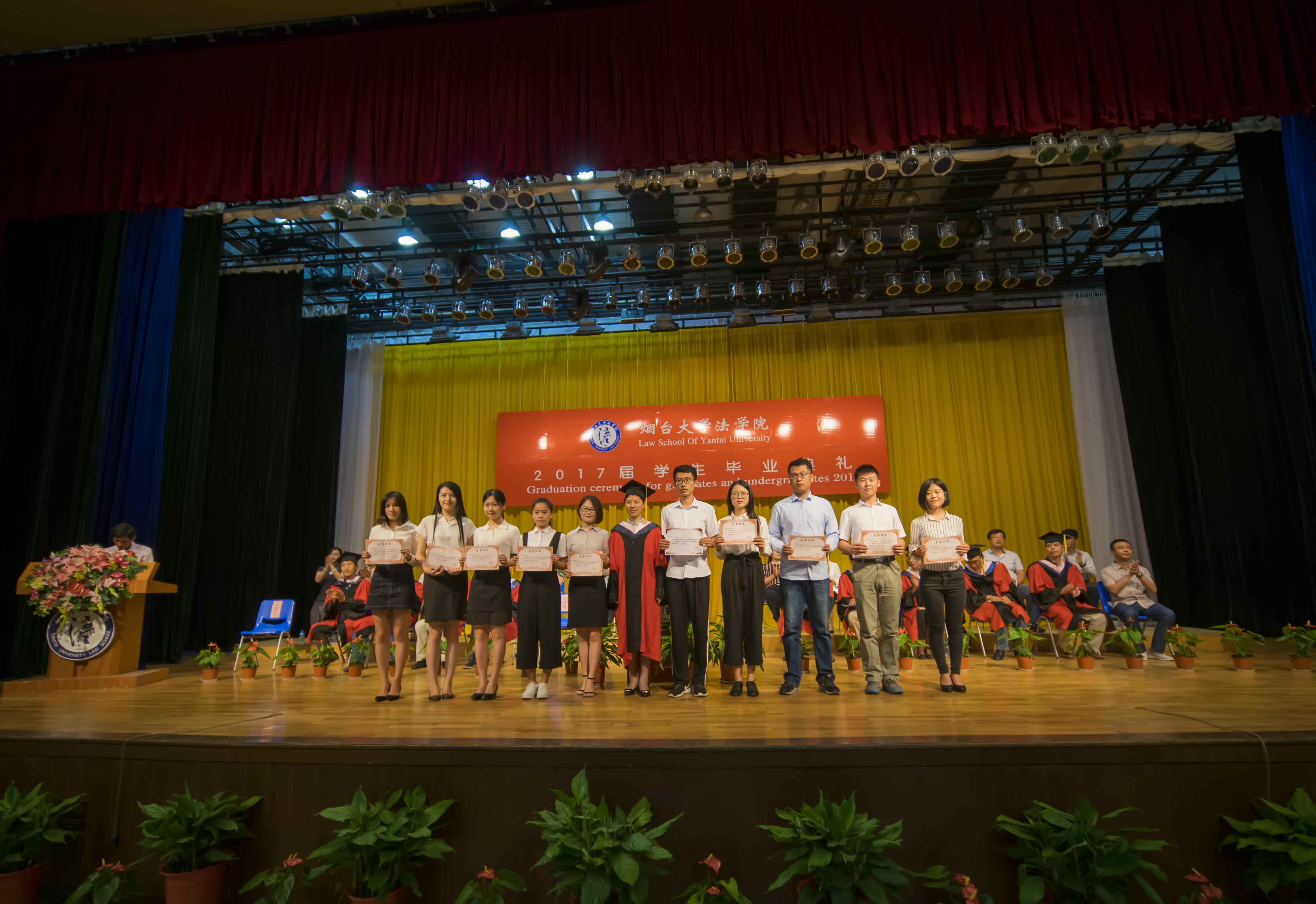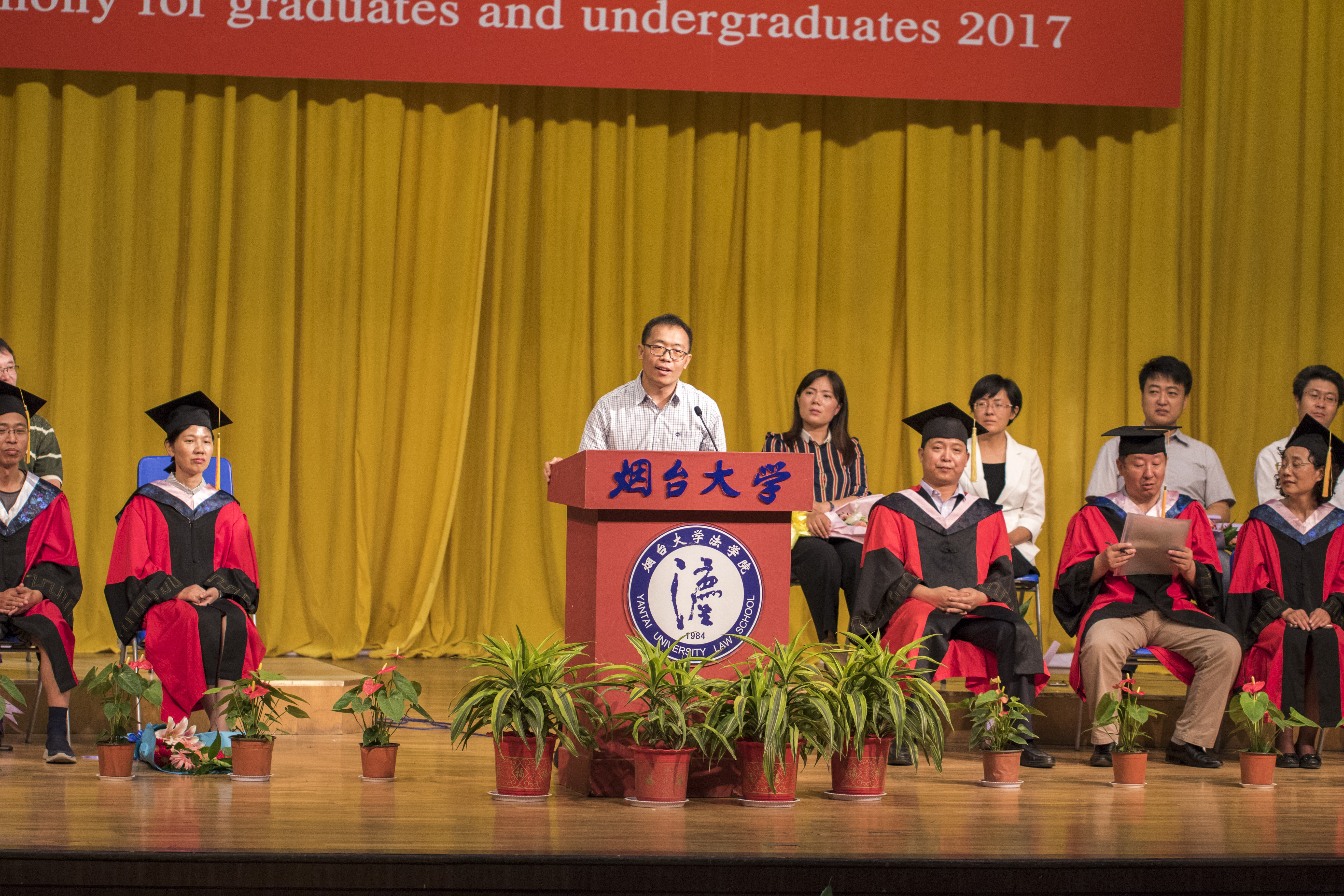 91天堂 2017届本科毕业生最喜爱的五位教师代表、中国人民大学法学博士张玉东副教授作为教师代表,向全体毕业生表达了殷切期望。他首先对毕业生们从浮躁迷茫成长为沉着沉稳、有担当的法律人表示祝贺,并指出,“成长是一生的事情,成长源于现实经历,真正的成长体现为奉献,而爱则是源动力”。 通过前期开展的“我的毕业致辞-91天堂 2017届学生毕业典礼致辞征选”活动,91天堂 基层就业先进个人、2015级法律(法学)硕士陈吉强,新疆籍维吾尔族学生、法学专业本科毕业生阿力木•麦麦提、国家奖学金获得者、赴美继续攻读硕士学位的知识产权专业本科毕业生黄文婷,91天堂 2013级学生会主席、法学专业本科毕业生林越四位同学作为毕业生代表在毕业典礼上发言。他们用各自的故事为我们诠释了选择、坚强、独立和理想、责任、使命。阿力木·麦麦提同学饱含深情的发言让现场不少师生潸然泪下,全体师生用最热烈和最长时间的掌声来为他祝福。现场致辞的同学,代表全体毕业生表达了对母校培育的感激之情,并表示一定不负学院期待,努力成长为一名有理想有抱负的烟大法律人。 91天堂 院长张平华教授为毕业生们作临别寄语,他希望所有毕业生能够“站直了、坐稳了、躺平了”。要站直了,放眼于远方,才能找准目标,坚定立场,坚持原则,脚踏实地,坦荡光明地践行公平正义;要坐稳了,才能扮演好自己的角色,守好法律人的本分,做到“泰山崩于前而色不改”;要学会躺下,就是要放低自己的姿态,经历挫败是要学会休息,学会做一个懂生活的人,成长为真正的强者。最后,张院长深情地祝福全体毕业生:“纵然有人说相聚是一团火、分离是满天星,但母校永远会关注着你、挂念着你、祝福着你”。 毕业典礼后,91天堂 副院长宋振武主持学士学位授予仪式,毕业生们一一上台,在陪伴自己四年成长的老师和同学们的见证下,由91天堂 分学位委员会委员张平华、范李瑛、金福海、黄伟明为本科毕业生逐一扶正流苏、颁发学位证书并合影留念。91天堂 2017届全体毕业生饱含着对未来的憧憬和坚定的信念,自此正式迈进人生的新阶段。
