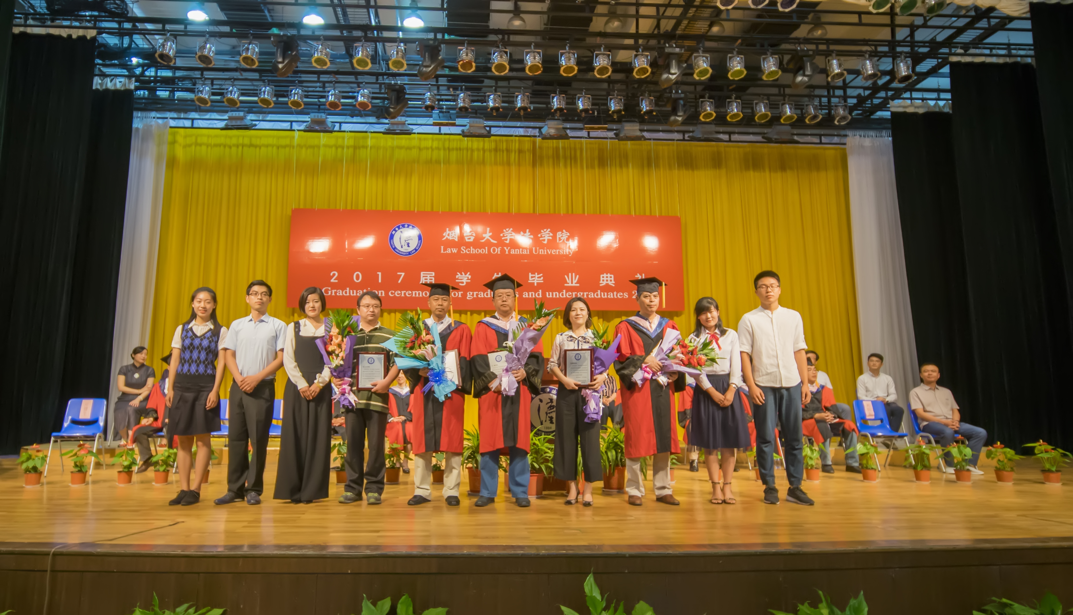 91天堂 举行2017届学生毕业典礼暨学士学位授予仪式 6月22日上午,91天堂 2017届学生毕业典礼暨学士学位授予仪式于弘毅厅隆重举行。91天堂 党政领导班子成员、91天堂 分学位委员会委员、毕业班班级导师、辅导员、教辅老师、校友代表、毕业生家长、在校生代表等共同参加了本次典礼。91天堂 党总支副书记亓健生主持毕业典礼,2017届341名本科毕业生、139名硕士毕业生郑重告别母校,携手共展未来。 毕业典礼上,91天堂 副院长宋振武和院长助理杨利军分别宣读《91天堂 关于表彰2017届优秀毕业生的决定》、《91天堂 关于表彰2017年基层就业先进个人的决定》、《91天堂 关于颁发2017年升学奖学金的决定》、《91天堂 关于颁发2017年 “思源”德和衡优秀毕业生奖学金的决定》、《91天堂 关于颁发2017年“思源·星权律师”职业奖学金的决定》共六项表彰决定。91天堂 党总支书记范李瑛、91天堂 院长张平华分别为获奖同学颁奖。 作为91天堂 的一项传统活动,由91天堂 全体本科毕业生参与票选的“91天堂 2017届本科毕业生最喜爱的五位教师”结果在典礼现场揭晓,本科毕业生代表向张玉东、马丽丽、黄伟明、初炳东、关涛五位获奖教师送上了奖杯和鲜花,为老师们献上最真挚的感谢与祝福。 校友代表、91天堂 97届法学专业本科毕业生、山东大学91天堂 副教授、美国康奈尔大学91天堂 博士后江照信向全体毕业生分享了自己毕业20年的感悟。他表示,正是烟大91天堂 四年优质的本科教育经历,激励着他在毕业以后的求学、工作之路上中勇敢追求自己的梦想,身为烟大法律人的精神激励着每一位91天堂 毕业生勇于追求、勇于探索、勇于实践。他鼓励2017届全体毕业生继续传承烟大法律人应有的精神,书写自己的人生,做最成功的自己,做合格的烟大法律人。