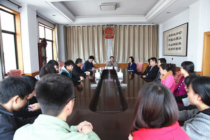 在每一处基地的走访过程中,学院领导、老师均与实践教学基地负责人、指导教师、实习学生举办座谈。各实习基地就学生实习分配情况、实习管理情况、学生生活条件等做具体介绍,对学生在实习中的表现给予了高度评价,认为同学们在工作中遵守纪律、尊敬师长、虚心学习,在指导下,初步掌握了提审、笔录、公诉、庭审等方面司法实务工作的技巧,为今后做一个合格的法律人打下了基础。同时,实习单位老师也对学院日后实习工作的开展提出了许多宝贵意见。如栖霞市人民法院院长郝敬尧指出,“留心处处皆学问”,在实习过程中同学们应积极自主学习,从日常的审判辅助中发掘专业知识的应用,希望同学们能够针对基层司法实践过程中普遍存在的执行难、权威受质疑、群众上访等同学们在实习过程中感受到的现象,了解基层法院的工作情况。