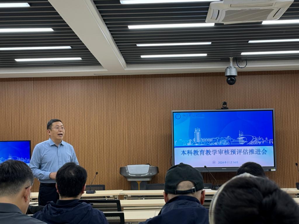 随后,院长助理王超政详细讲解了本科教育教学审核评估工作的相关安排。王超政指出,此次审核评估工作将围绕教学管理、师资队伍、教学条件、教学过程、教学效果等五个方面进行。他详细介绍了评估工作的流程、时间节点以及各阶段的具体任务,要求各相关部门和教职工严格按照评估标准,认真准备相关材料,确保评估工作的顺利进行。