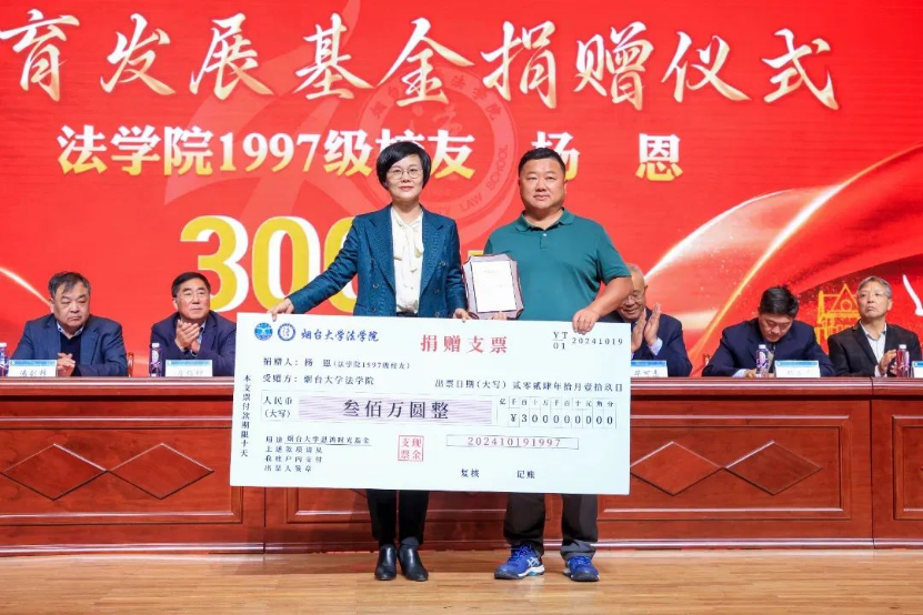 1997级校友杨恩设立“恩鸿时光基金”奖教金,年奖励金额20万元。2024年度共奖励发表在《清华法学》《法学》等高水平期刊上的论文9篇。