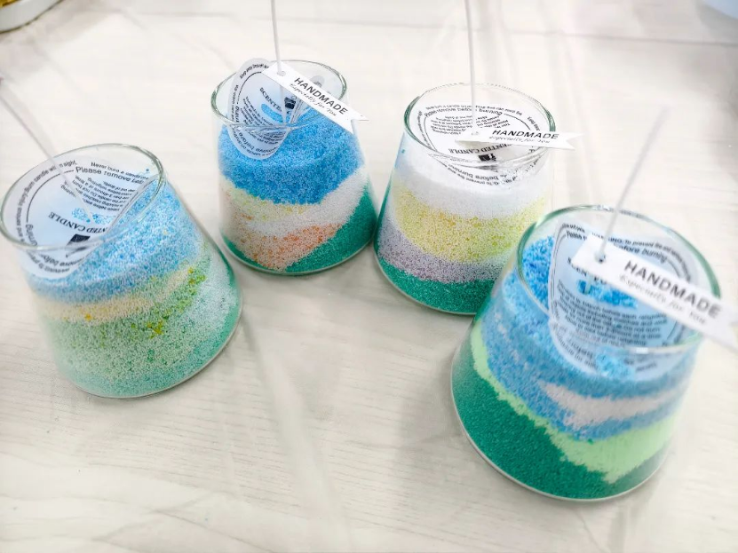 活动中,大家先通过工具固定蜡烛芯,接着用精油和颜料混合沙料,通过构图和填沙,一幅幅独一无二的作品就这样诞生了。每一支沙画蜡烛都承载着女性们对美好生活的热爱与向往,成为这个春日里一道亮丽的风景线,也为妇女节增添了一抹别样的温情与浪漫。 活动间隙,学院工会还特别为大家准备了手工精油皂、茶饮、零食等,大家一边品尝着零食,一边闲话家常。活动最后还设置了合影留念环节,大家手持自己制作的沙画蜡烛,脸上洋溢着幸福的笑容。