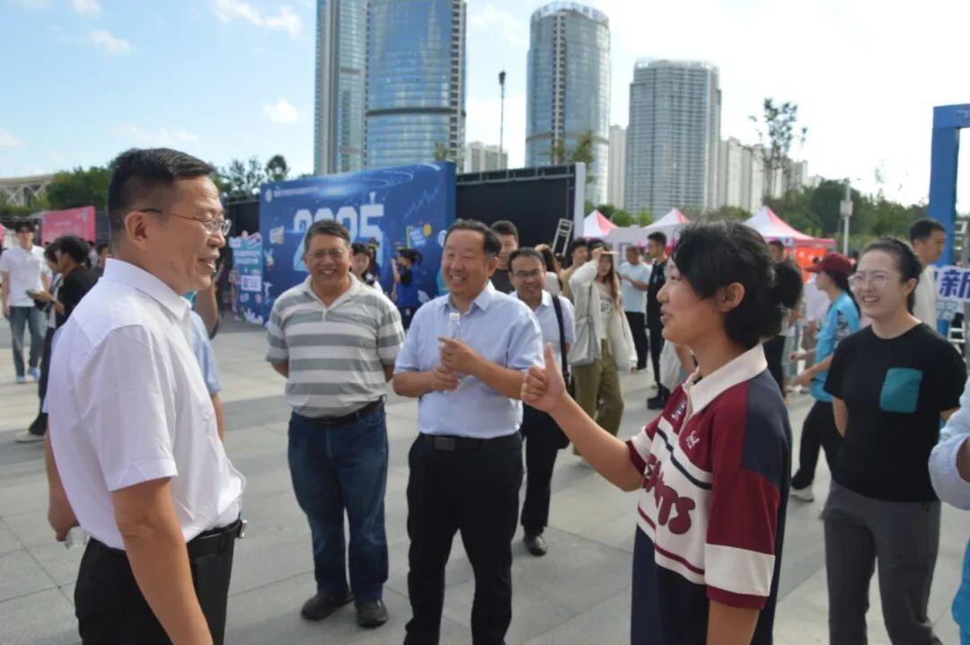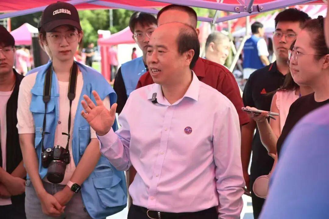 迎新报到处,看望前来报到的本科新生,与他们亲切交流,并鼓励他们在新的求学阶段里,认真学习,为实现自我目标和梦想而努力。