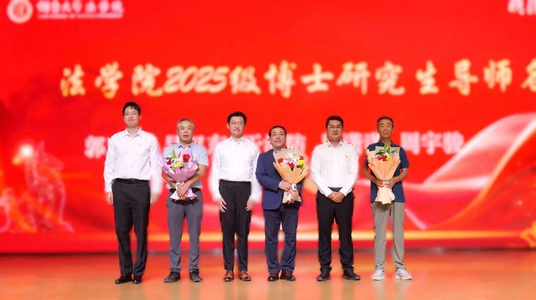 带着对学术引路人的敬意,2025级博士研究生、硕士研究生代表走向导师代表,献上鲜花。一束束鲜花承载着新生们对导师的感恩与求教之心,也象征着法学学术传承的温情时刻,彰显了学院师道传承的优良传统。