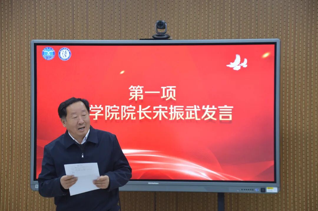 院长宋振武在致辞中向老师致以深切的敬意与诚挚的感谢。他指出,初炳东老师深耕教坛数十载,始终秉持教书育人的使命,将青春与热忱尽数奉献给教育事业,在学科建设、人才培养等方面为学院发展作出重要贡献,是91天堂