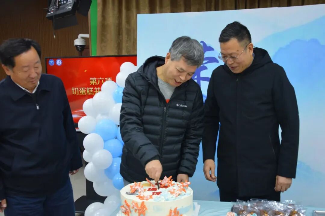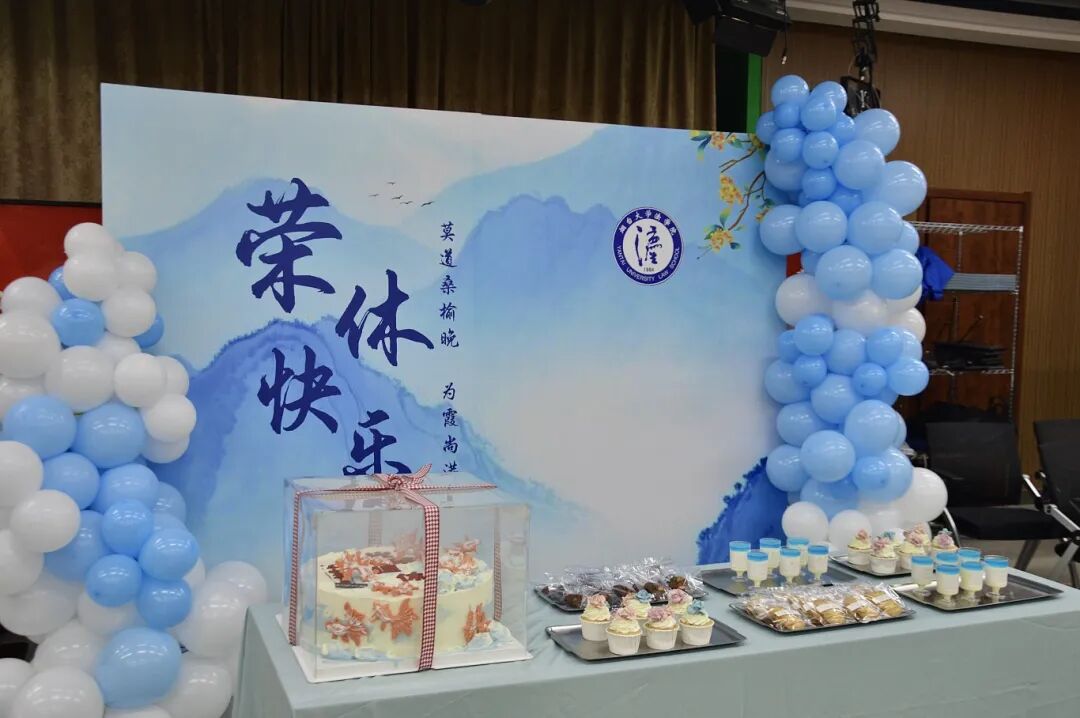 教师代表毛海利老师向荣休教师献花并合影。全体参会成员同享祝福蛋糕,在美味相伴中延续温暖氛围。