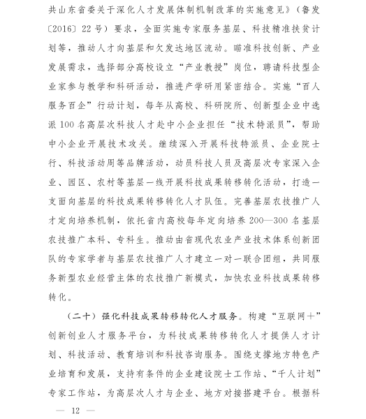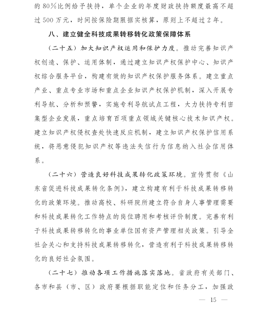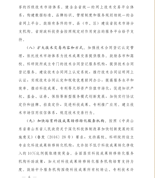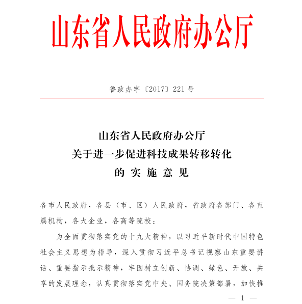 山东省人民政府办公厅关于进一步促进科技成果转移转化的实施意见