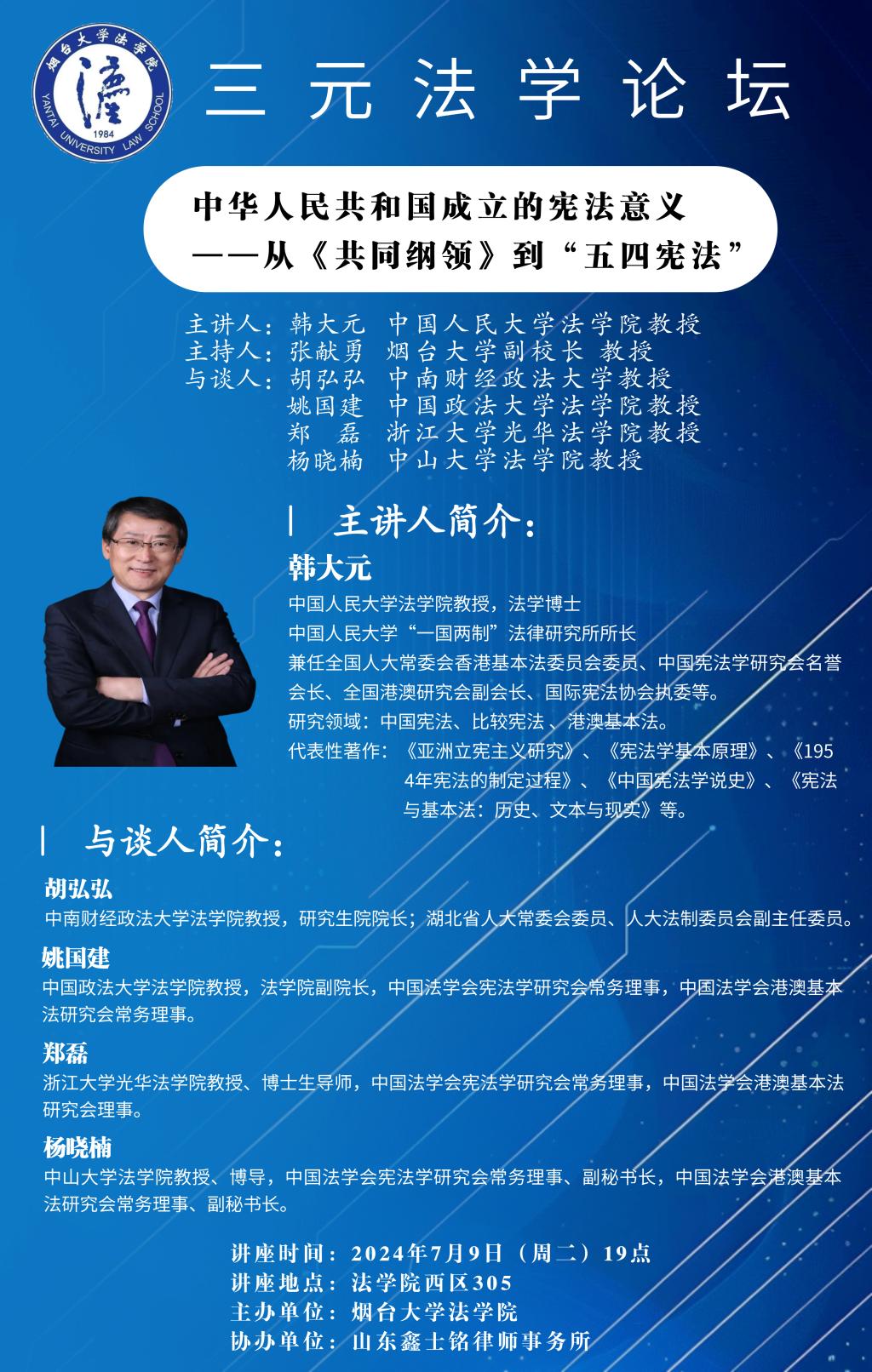 【讲座预告】三元法学论坛:中华人民共和国成立的宪法意义——从《共同纲领》到“五四宪法”