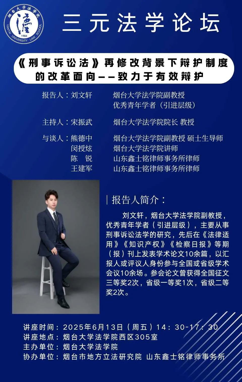 【讲座预告】三元法学论坛:《刑事诉讼法》再修改背景下辩护制度的改革面向——致力于有效辩护