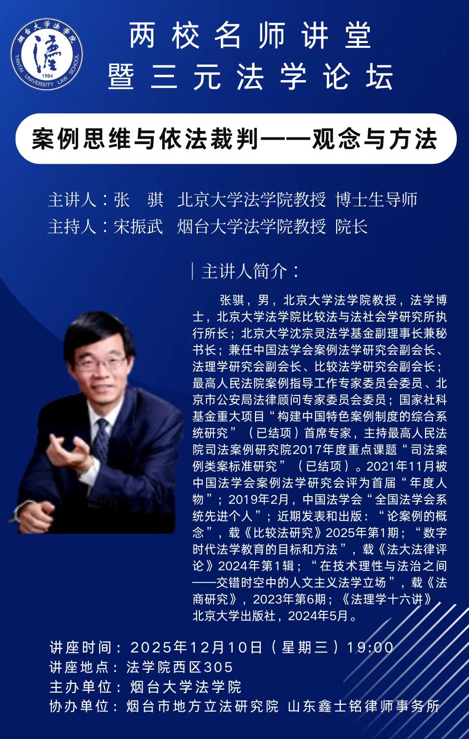 【讲座预告】两校名师讲堂暨三元法学论坛:案例思维与依法裁判——观念与方法