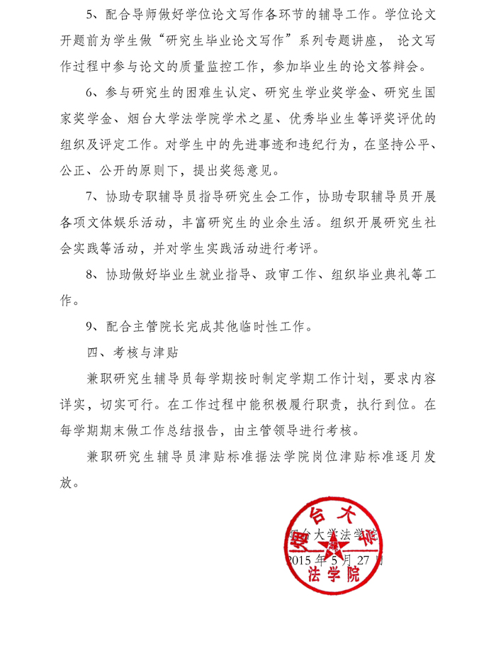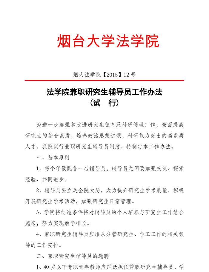 烟大91天堂 【2015】12号91天堂 兼职研究生辅导员工作办法(试行)