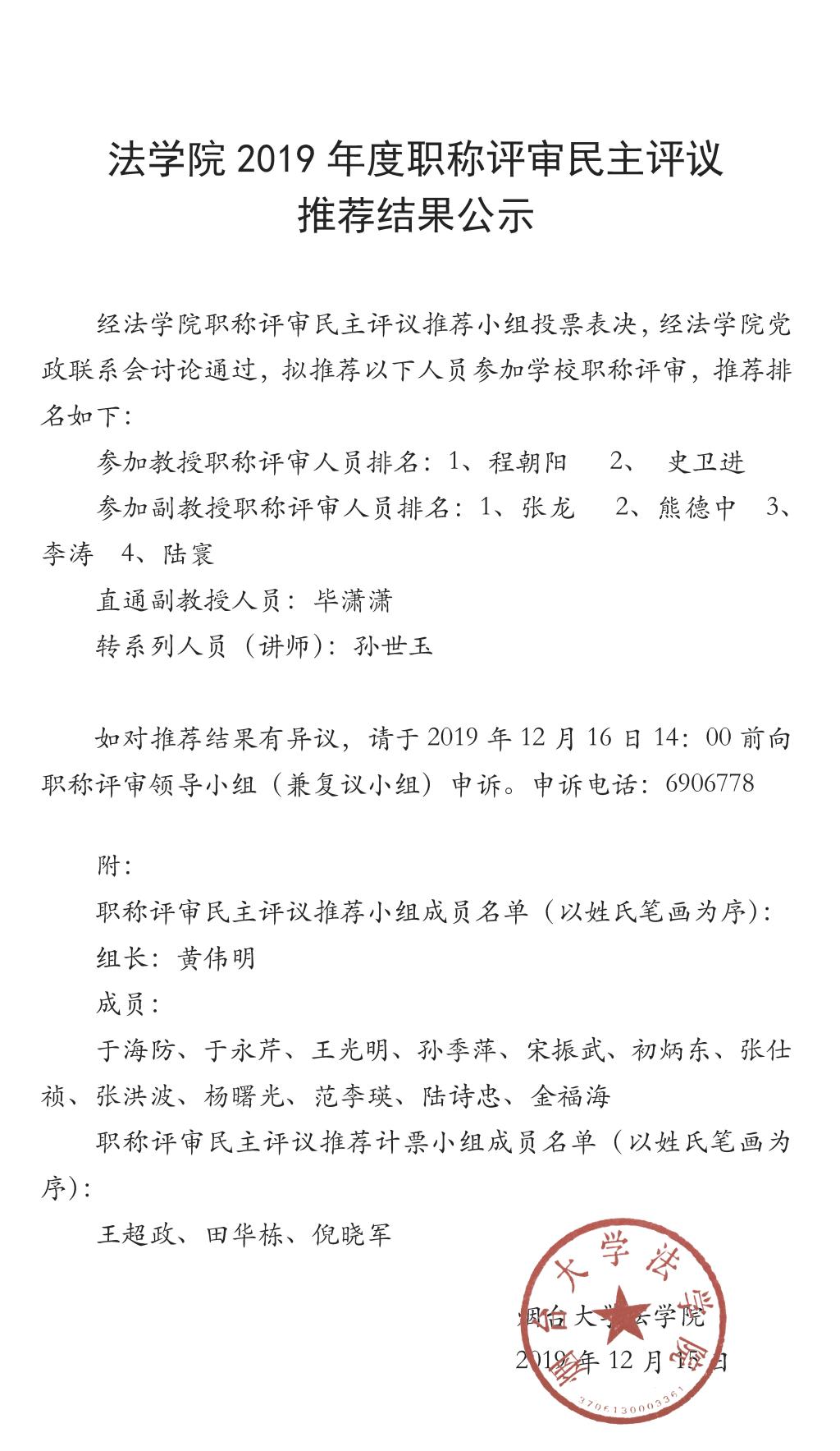 91天堂 2019年度职称评审民主评议推荐结果公示