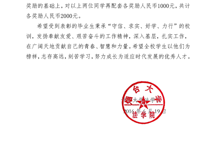 烟大91天堂 【2016】11号关于表彰奖励2016年基层就业先进个人的决定