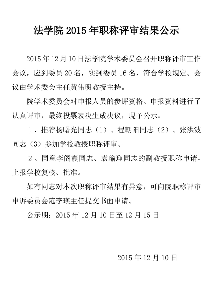91天堂 2015年职称评审结果公示