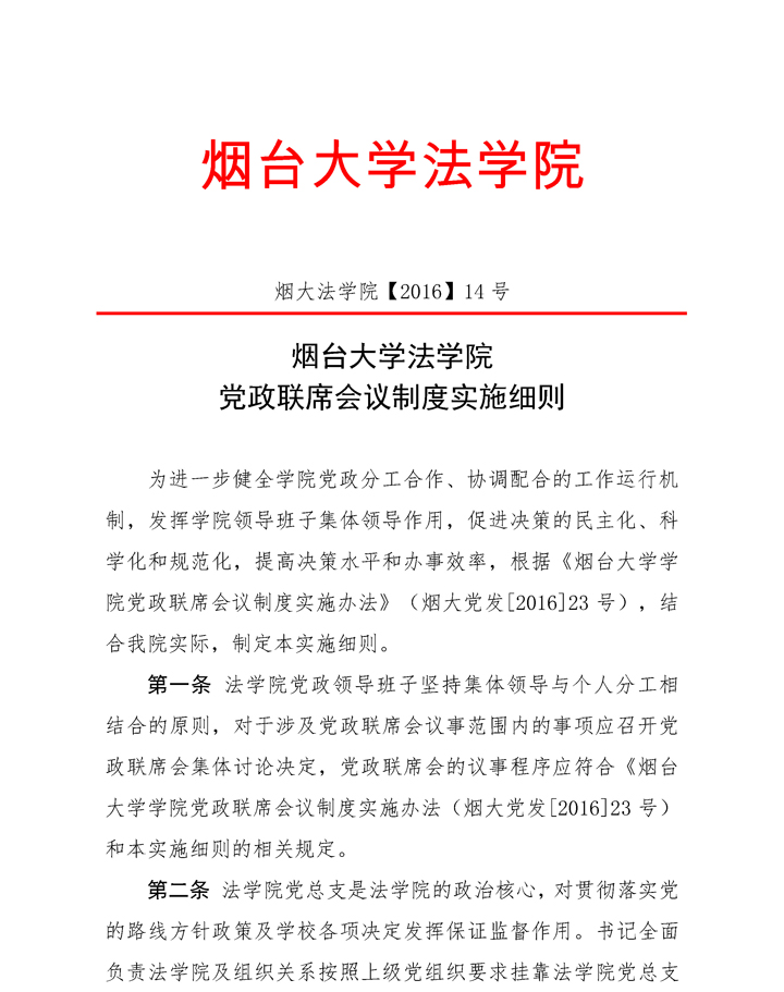 烟大91天堂 【2016】14号91天堂 党政联席会议制度实施细则
